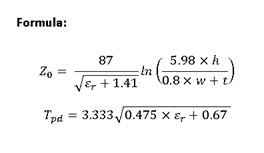 Opóźnienie propagacji (TD) przeliczane jest na ps/inch z uwzględnieniem korekt empirycznych.